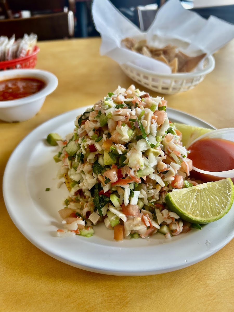 Excellent mixed seafood cocktail and shrimp diabla. The chips and salsa are great.